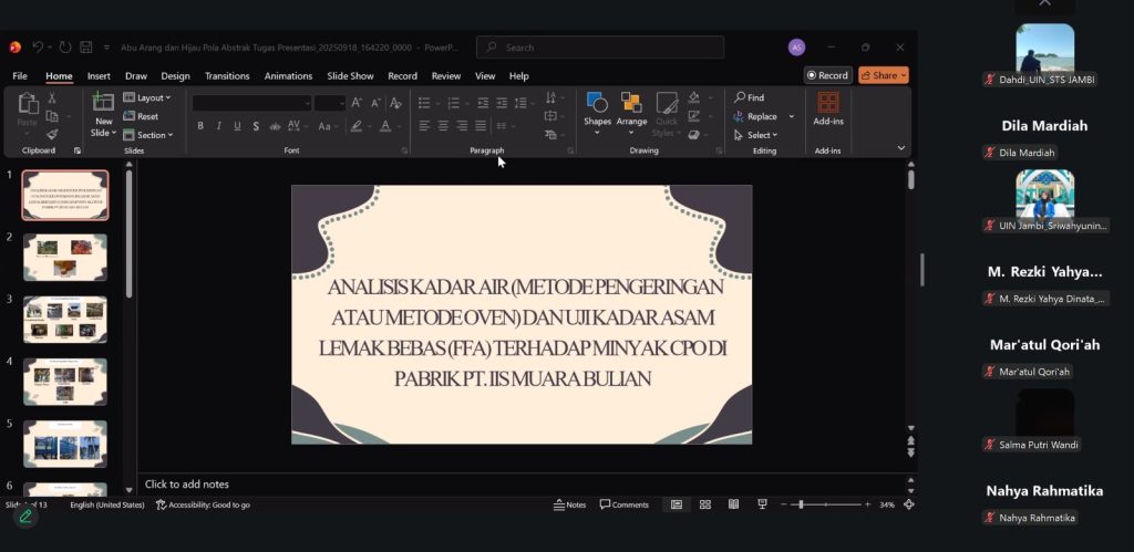Dalam upaya memperkuat kesiapan generasi muda menghadapi era industrialisasi, sejumlah mahasiswa Program Studi Kimia menjalani program magang intensif di dua perusahaan besar, yakni PT Inti Indosawit Internasional Jambi dan PetroChina International Jabung Ltd. Tanjung Jabung Timur. Program ini menjadi langkah strategis untuk mempertemukan kompetensi akademik dengan kebutuhan industri modern.